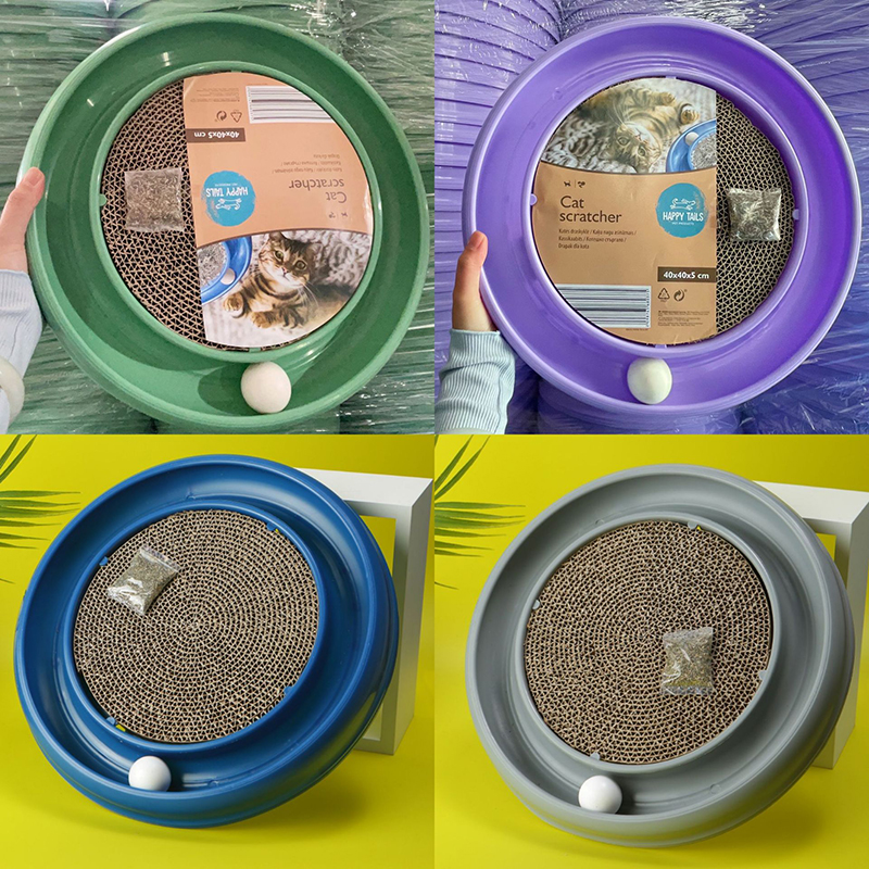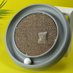 1 قاعدة، 1 أداة خدش دائرية من الورق المقوى المموج و1 كرة؛ضع الكرة في المسار الصحيح لساعات من المرح - قم بتسلية قطتك واحفظ أثاثك من الخدش!