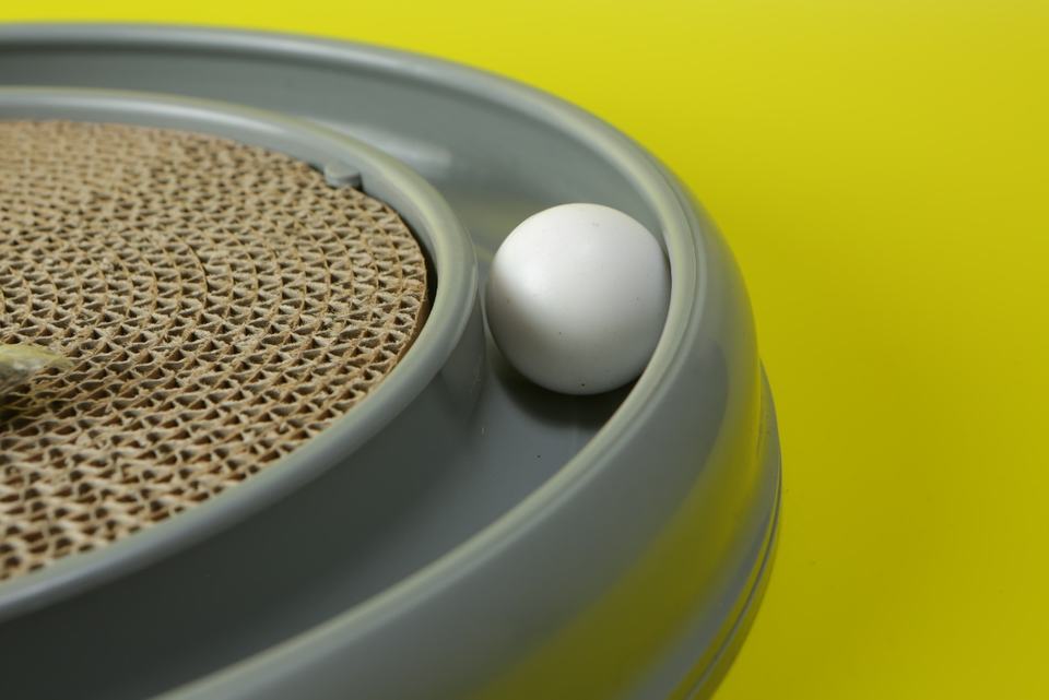 تحتوي أداة خدش القطط على قناة بها كرة صغيرة ويمكن لقطتك الدفع بأنفها أو الدفع بمخلبها.
