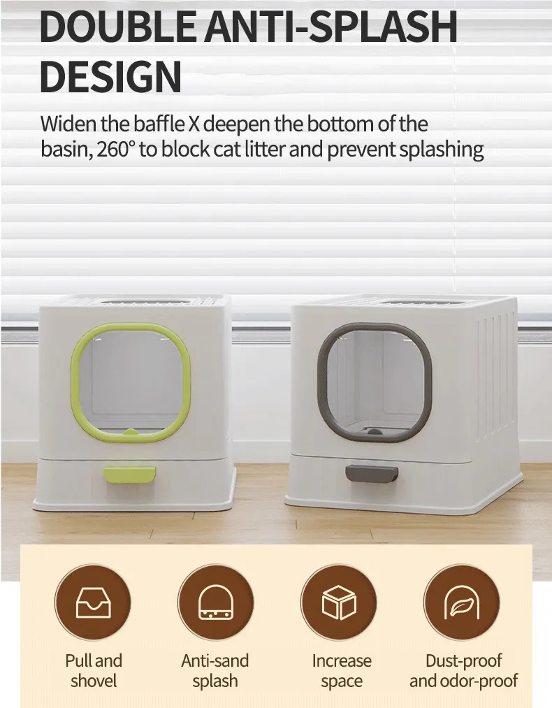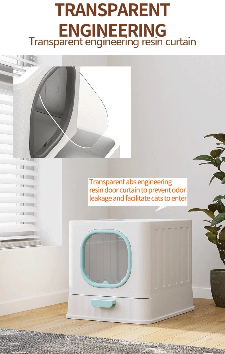 Blwch Sbwriel Cath Gofod Mawr Gwrth-Sblash Lled-gaeedig