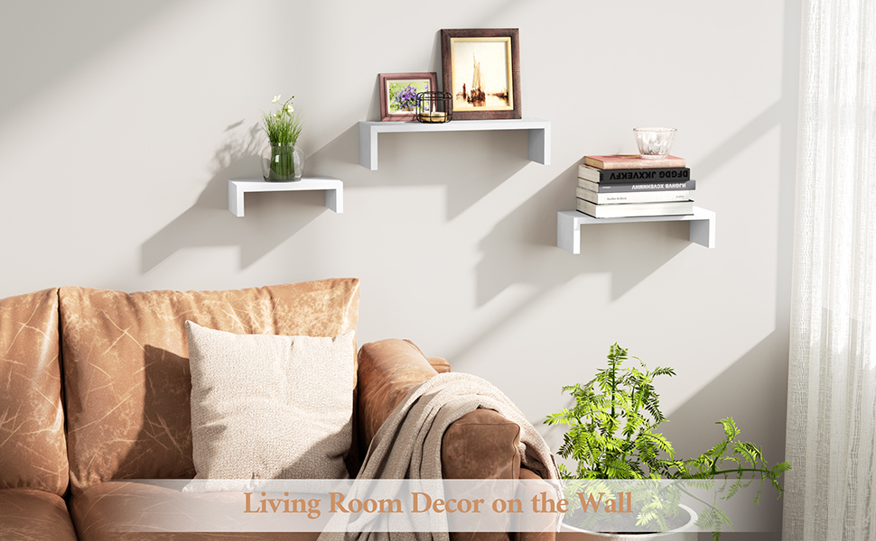 - Κλασικά και ρουστίκ πλωτά ράφια: Τα ράφια σχήματος U με λευκό φινίρισμα θα είναι ένα τέλειο κομπλιμέντο για την κρεβατοκάμαρα, την κουζίνα, το σαλόνι, το γραφείο ή περισσότερα.