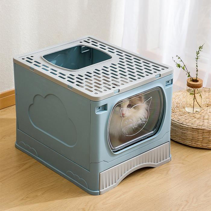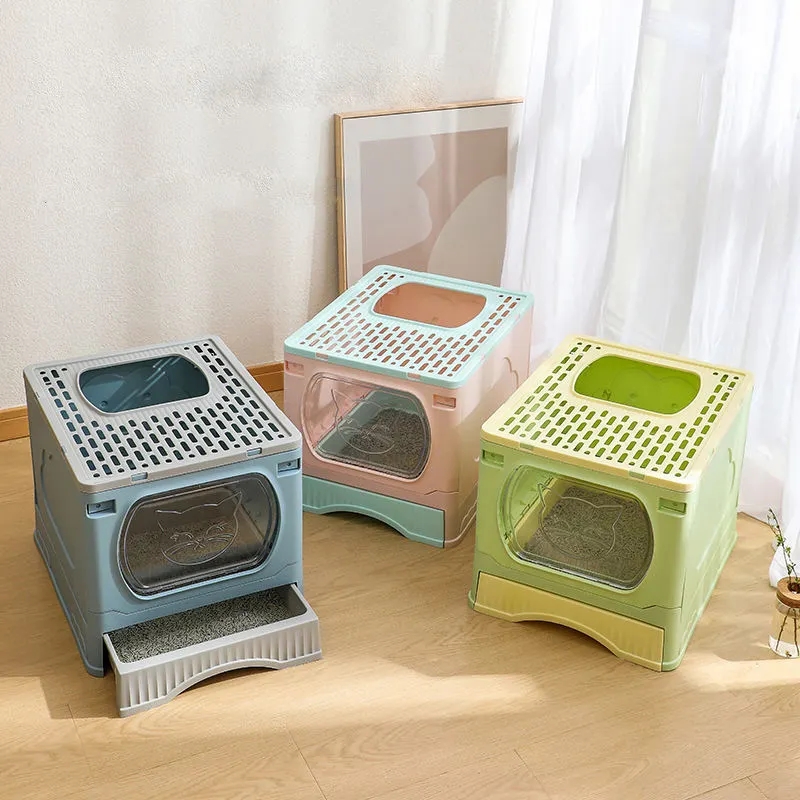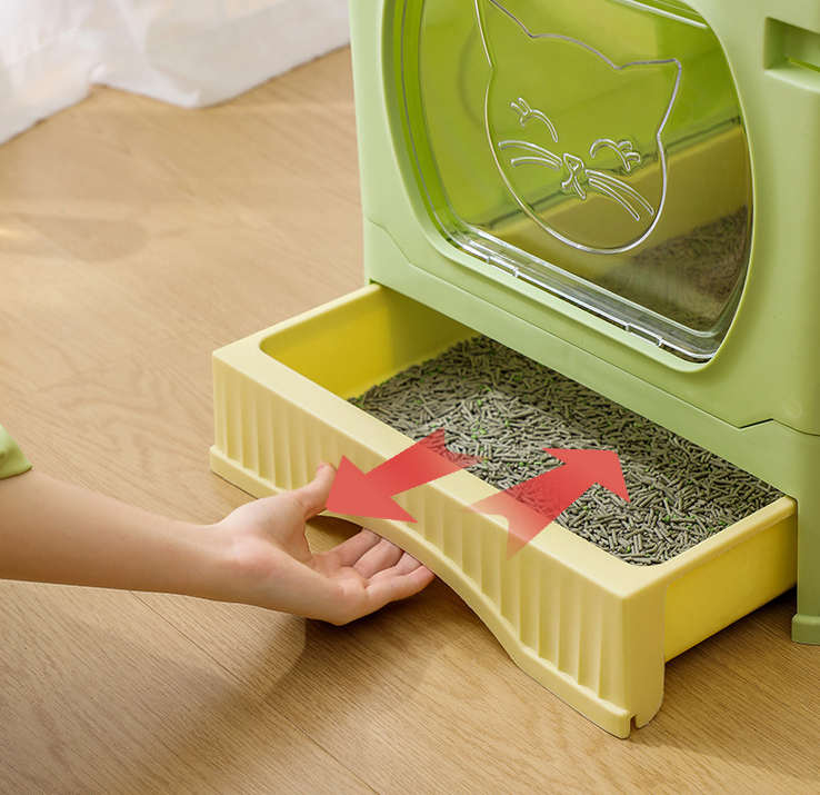 Kothak Kotoran Kucing Pet sing Ditutup Gedhe Kanthi Sendok
