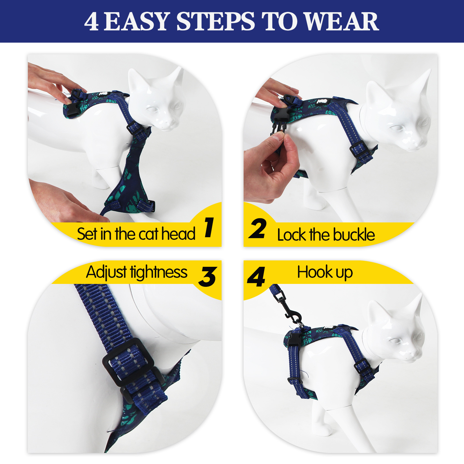 Regulacja w celu idealnego dopasowania: Uprząż jest w pełni regulowana, aby pomieścić koty o różnych rozmiarach.Bezpieczne i łatwe w użyciu klamry pozwalają znaleźć idealne dopasowanie dla Twojego kociego przyjaciela, zapewniając, że się z niego nie wyślizgnie.