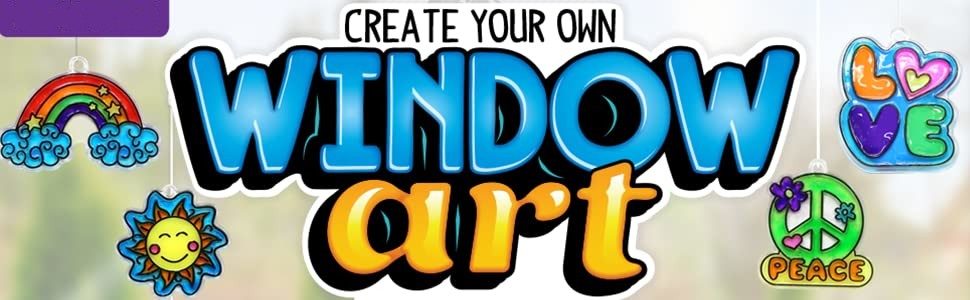 - DESIGN 20 WINDOW ART CREATIONS: Make your windows pop with 20 whimsical window art creations! Color 12 suncatcher shapes and create custom window clings with vibrant suncatcher paints!