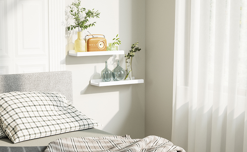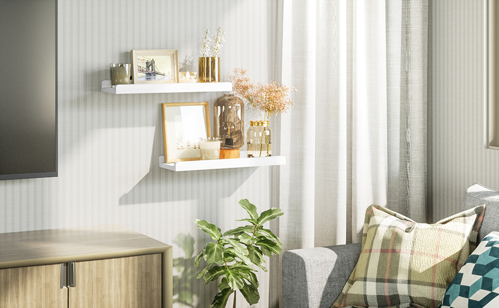 - Slide protective ledge – Different from other floating shelves, it has professional design with protective ledge in the front, which will allow you to stably display your items, including picture frame, ornamental, and houseplants, protecting them from creeping down