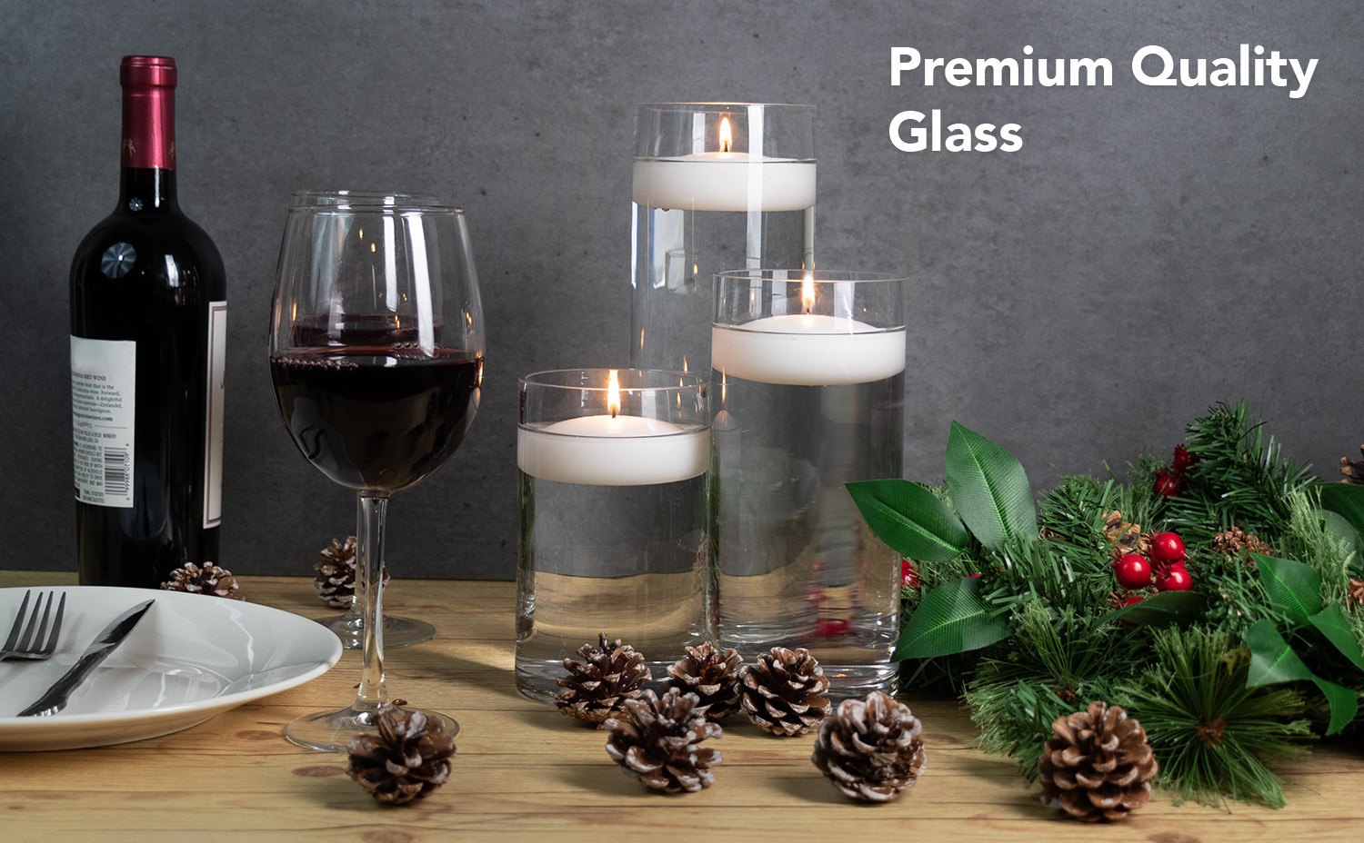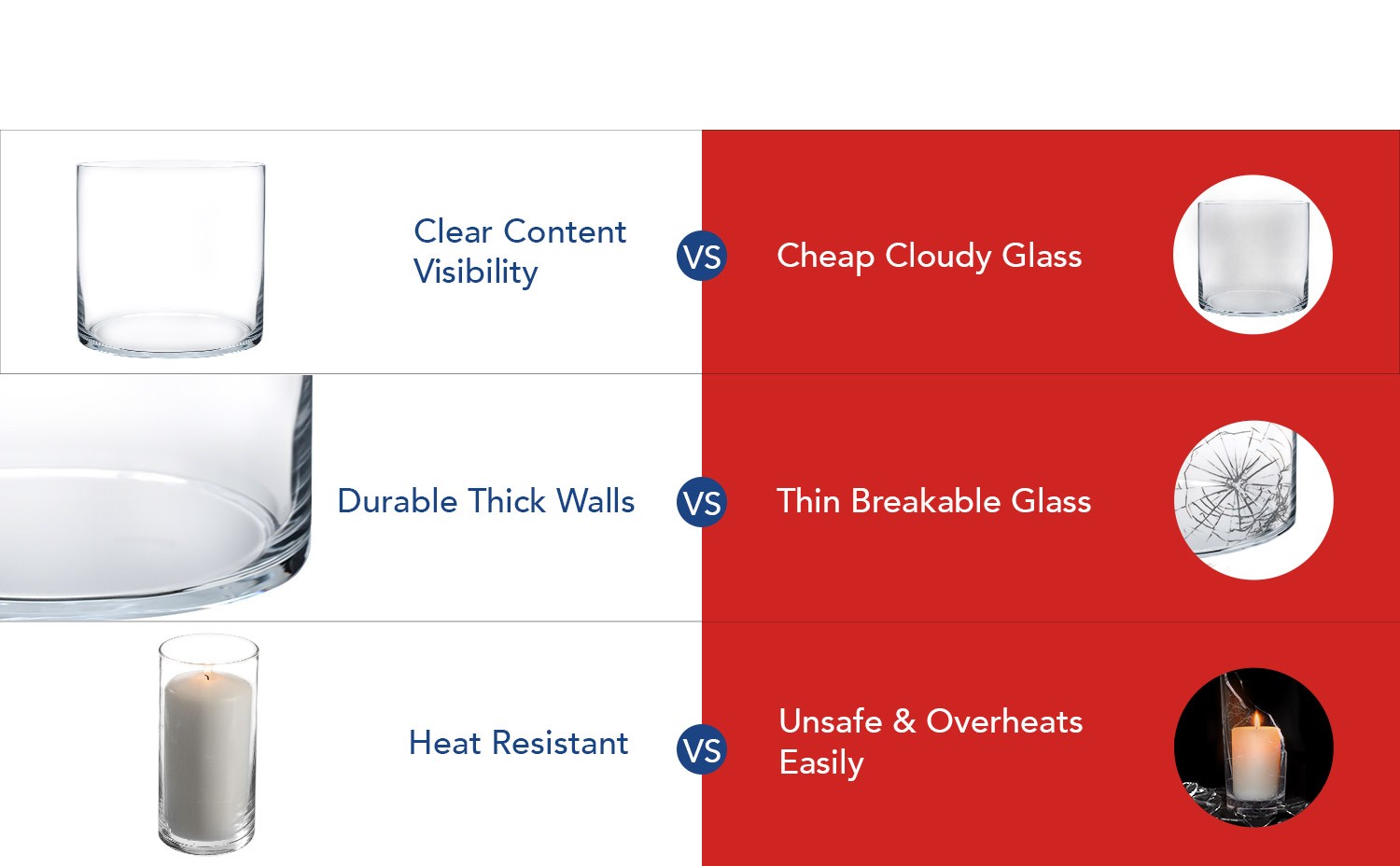 - QUALITY: Royal Imports set of 3 clear glass cylinder vases are made of crystal clear glass to maximize content visibility. Each cylinder features thick glass walls and weighted base to ensure durability. Imported. FITS 2 and 3 INCH WIDE CANDLES