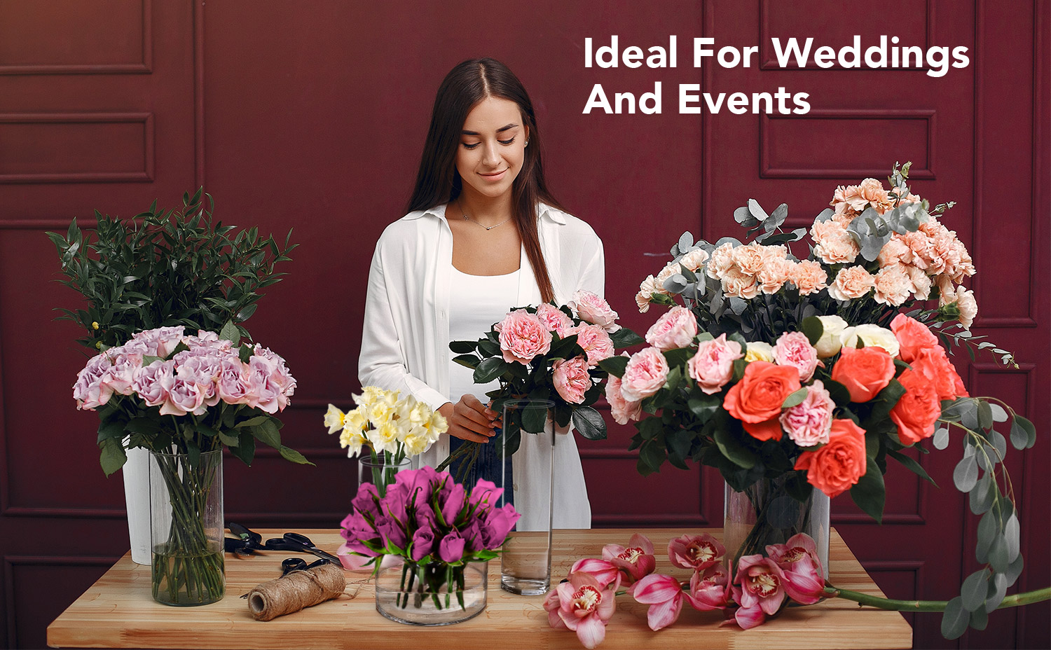 - PACKAGING: Each set of 3 cylinder candle holders is packaged in a strong cardboard box and wrapped in bubble-wrap for ultimate protection. Set includes 3.3″ inch wide vases in 3 different heights – 5.3”, 6.8”, 9.7”.