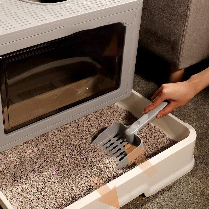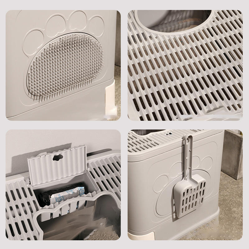 - Enclosed Design: The fully enclosed structure of the litter box not only ensures privacy for your feline companion but also contains odors, maintaining a fresh and pleasant environment in your home.